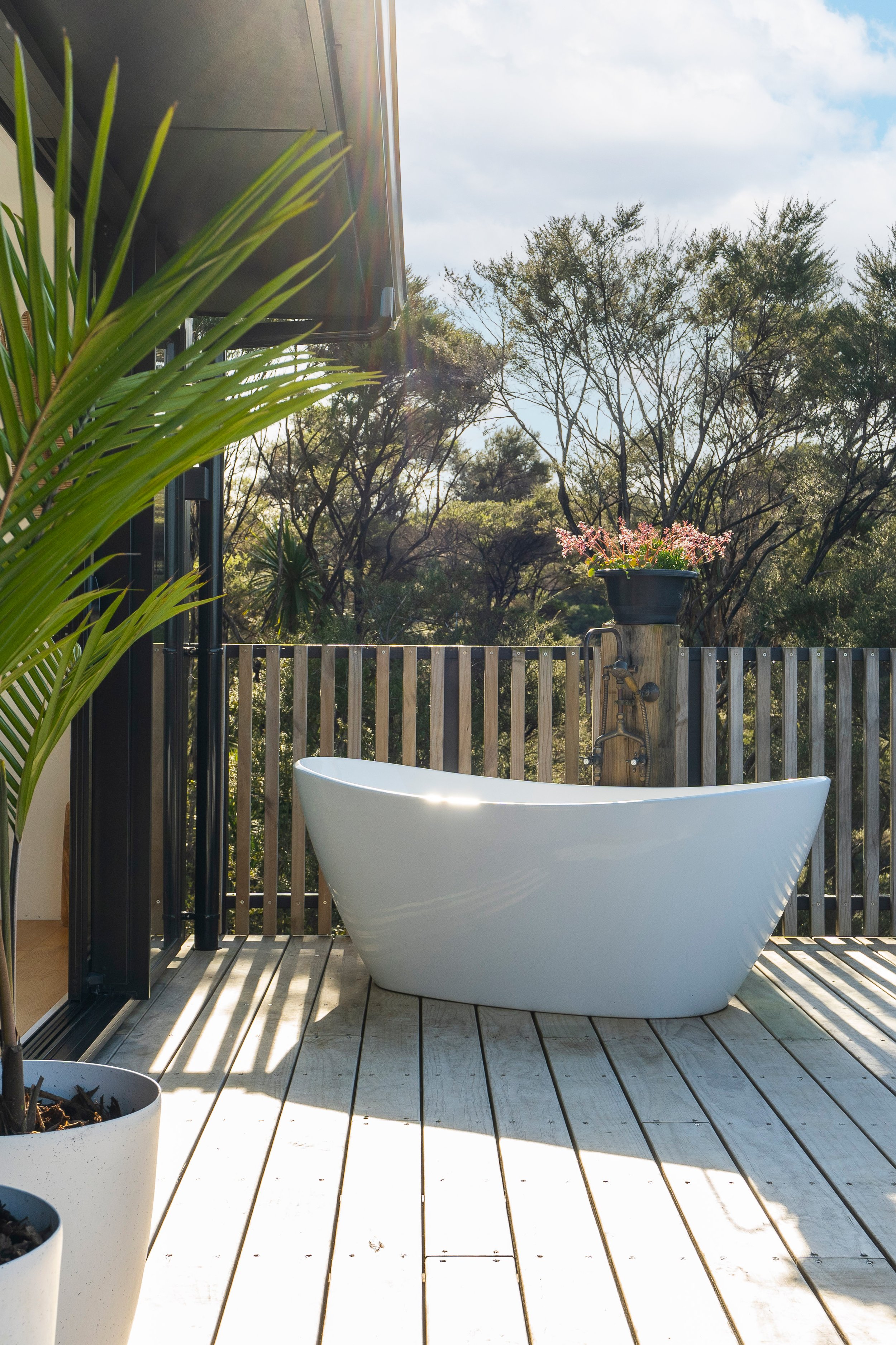 A private outdoor tub designed for slow evenings and long sunsets.